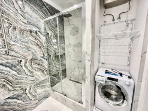 В квартире есть всё необходимое для комфортного проживания. Дизайнерский ремонт подчёркивает стиль и уют. На кухне и в комнатах имеется мебель. Из техники - холодильник, телевизор, стиральная машина, посудомоечная машина, бойлер, кондиционер. Удобная планировка включает один совмещённый санузел и гардеробную. Есть лоджия, что добавляет дополнительное место для отдыха или хранения.