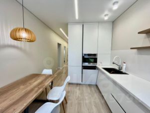 В квартире есть всё необходимое для комфортного проживания. Дизайнерский ремонт подчёркивает стиль и уют. На кухне и в комнатах имеется мебель. Из техники - холодильник, телевизор SMART, стиральная машина, посудомоечная машина, бойлер, кондиционер. Есть лоджия, что добавляет дополнительное место для отдыха или хранения.