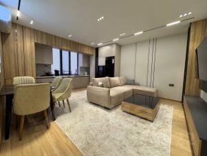 В квартире выполнен дизайнерский ремонт, установлена современная мебель и техника. Здесь есть все для комфортной жизни: кондиционер, холодильник, посудомоечная машина, телевизор и стиральная машина. Ванная комната оборудована душевой кабиной, есть отдельный и совмещенный санузел, что добавляет удобства в повседневной жизни.