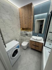 Оборудована современной кухней: холодильник, плита, микроволновка, стиральная машина