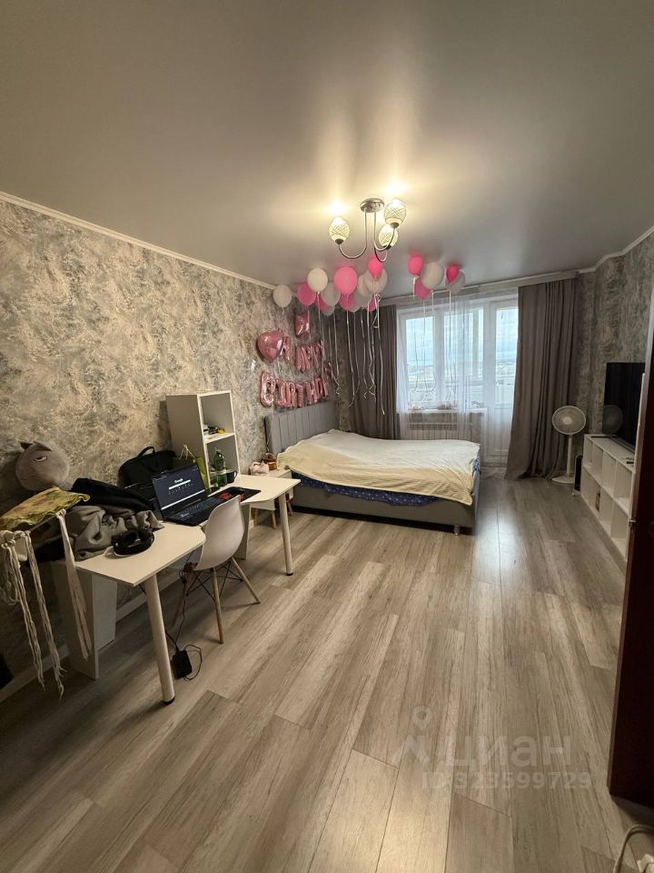 Квартира расположена на 5 этаже 20-этажного дома, построенного в 2017 году. Общая площадь составляет 41 кв. м, из которых 18 кв. м занимает жилая комната и 15 кв. м кухня. Высота потолков — 2.7 метра. Окна выходят во двор, что обеспечивает тишину и уют.