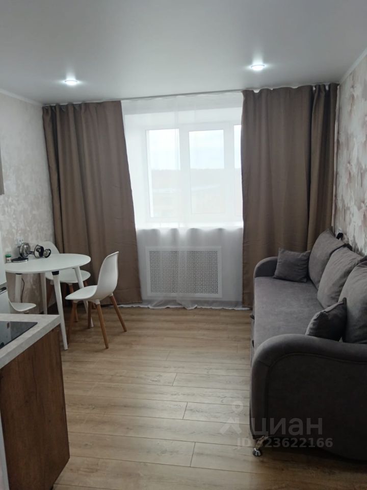 Сдаётся уютная квартира-студия в шаговой доступности от остановок общественного транспорта . Общая площадь квартиры составляет 18 кв. м, расположена на 5 этаже 9-этажного панельного дома. Высокие потолки 2.6 метра создают ощущение простора, а окна, выходящие во двор, обеспечивают тишину и спокойствие.