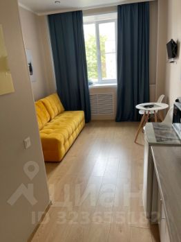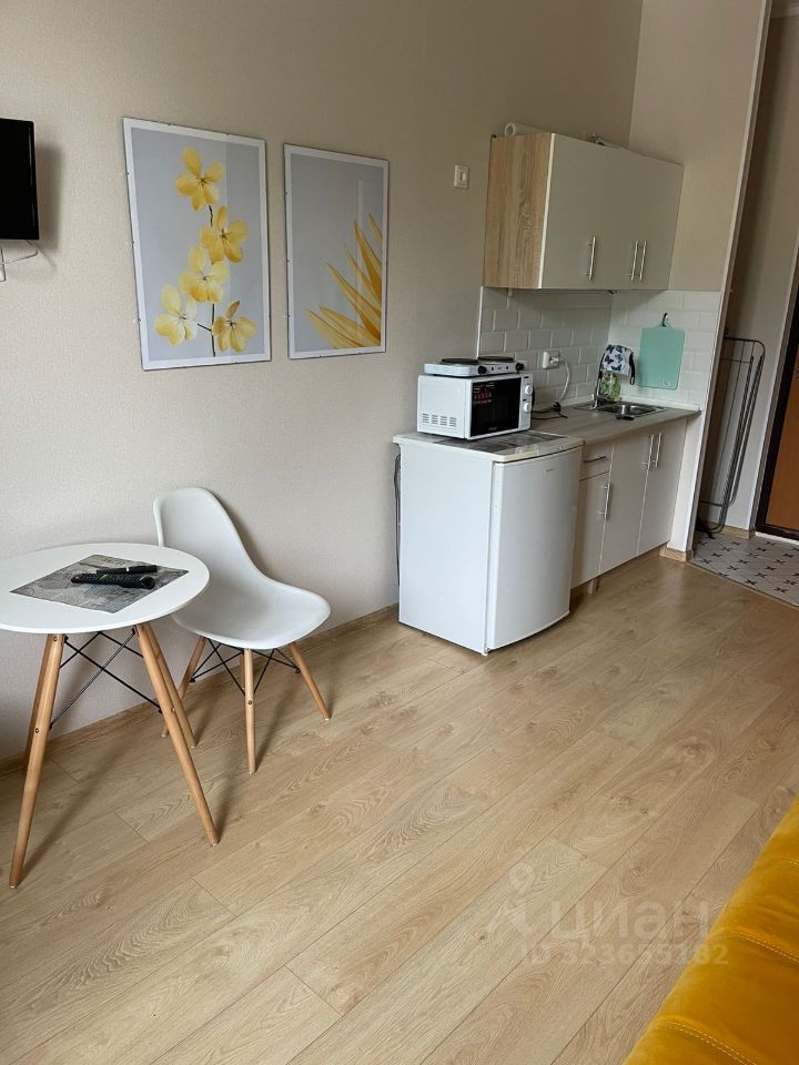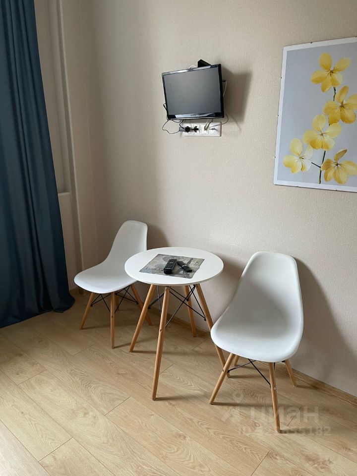 Квартира обставлена современной мебелью и готова к комфортному проживанию. В студии выполнен качественный евроремонт. Кухня оборудована всем необходимым: холодильником, стиральной машиной и телевизором. Ванная комната совмещенная, с полноценной ванной. Окна выходят во двор, поэтому в квартире тихо и спокойно.