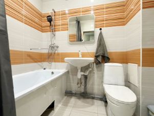 Полная комплектация бытовой техникой: холодильник, варочная панель с духовкой, микроволновая печь, стиральная машина — всё для вашего удобства.