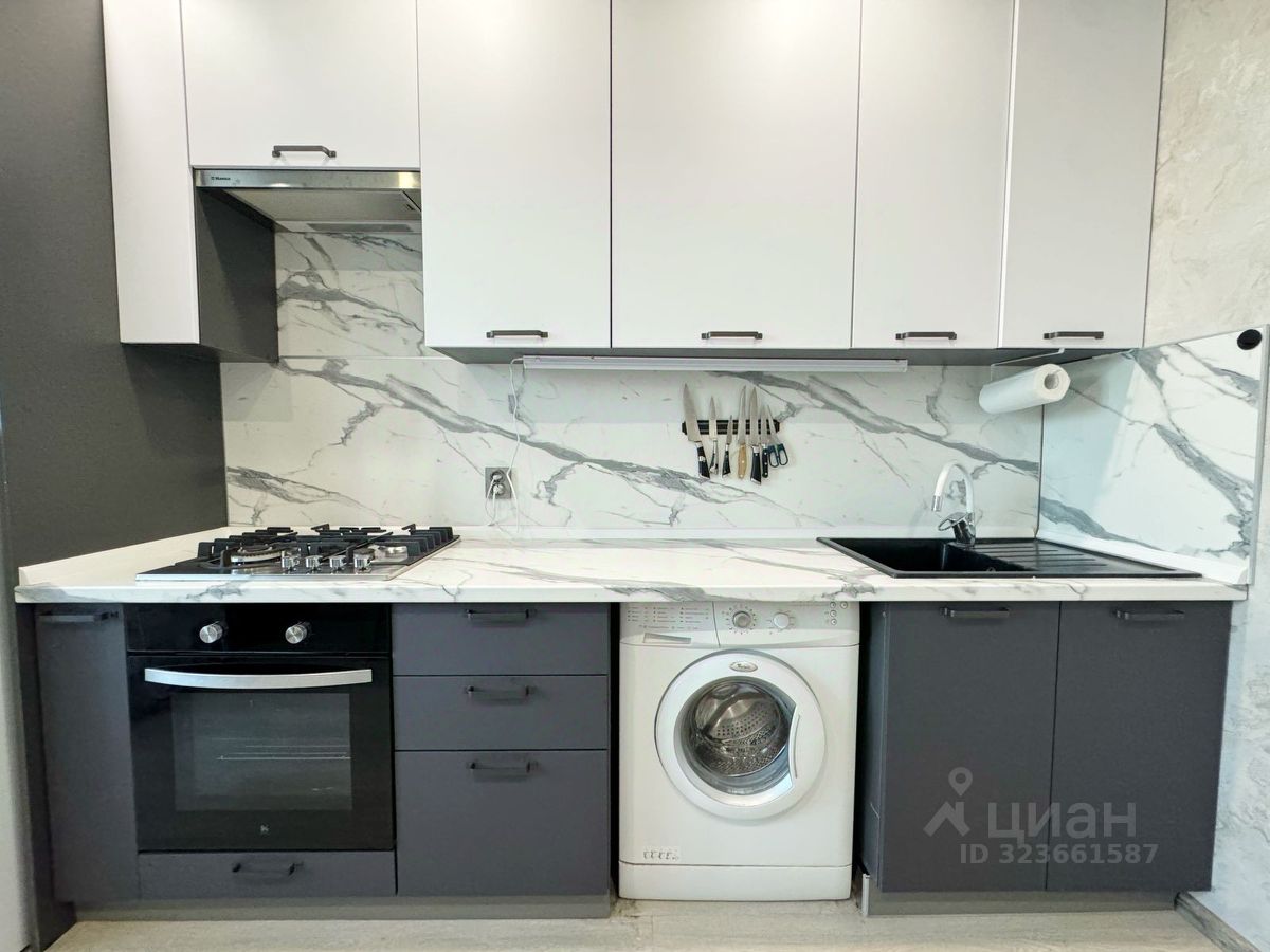 Свежий ремонт: мраморная отделка фартука на кухне, качественные материалы, светлые стены и напольное покрытие создают ощущение простора и уюта.
