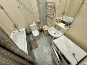 Современный ремонт. Интерьер выполнен в спокойных, нейтральных тонах, создающих атмосферу уюта и гармонии. Качественные отделочные материалы, ровные стены и полы, надёжная сантехника.