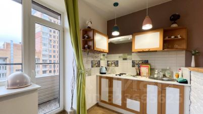 ПРО КВАРТИРУ: Стильный кухонный гарнитур, оснащён варочной панелью, вытяжкой, духовым шкафом, микроволновой печью, чайником холодильником, шкафы