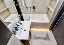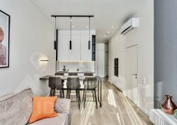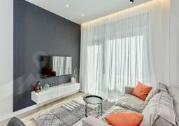 В квартире есть всё необходимое для комфортного проживания. Дизайнерский ремонт подчёркивает стиль и уют. На кухне и в комнатах имеется мебель. Из техники - холодильник, телевизор, стиральная машина, посудомоечная машина, бойлер, кондиционер. Удобная планировка включает один совмещённый санузел и гардеробную. Есть лоджия, что добавляет дополнительное место для отдыха или хранения.
