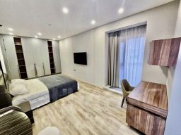 В квартире есть всё необходимое для комфортного проживания. Дизайнерский ремонт подчёркивает стиль и уют. На кухне и в комнатах имеется мебель. Из техники - холодильник, телевизор, стиральная машина, посудомоечная машина, бойлер, кондиционер. Удобная планировка включает один совмещённый санузел и гардеробную. Есть лоджия, что добавляет дополнительное место для отдыха или хранения.