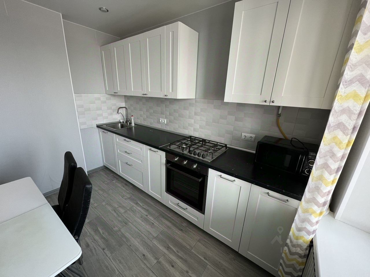 Квартира полностью готова к проживанию: в комнате и на кухне есть вся необходимая мебель. На кухне установлен вместительный холодильник, а в ванной комнате — стиральная машина и ванна. Совмещенный санузел обеспечивает удобство и экономию пространства.