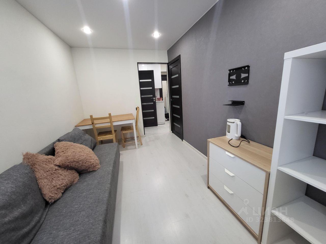 Светлая студия в формате мини-двушки в тихом районе города, 15 минут на машине до центра.