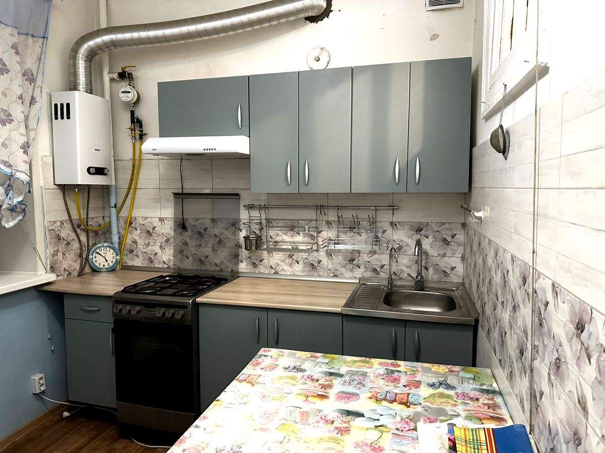 Санузел раздельный в современном кафеле, пластиковые окна, кухонный гарнитур с вытяжкой, газовая плита, холодильник, стиральная машина-автомат.