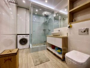 В квартире выполнен евроремонт, что позволяет сразу заехать и наслаждаться комфортом. Просторная жилая зона площадью 22 кв. м объединена с кухней площадью 8 кв. м, что делает пространство функциональным и светлым. В санузле установлена душевая кабина. Окна выходят на улицу, поэтому в квартире всегда много света. В наличии вся необходимая техника: кондиционер, холодильник, телевизор, стиральная машина. Мебель есть как в комнате, так и на кухне, что избавляет от необходимости дополнительных трат.