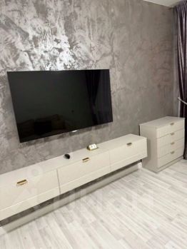 Квартира полностью меблирована и оснащена всем необходимым для комфортного проживания. На кухне есть мебель, кондиционер, холодильник и стиральная машина. В комнате установлены телевизор и кондиционер. Санузел совмещённый, есть ванна. Также имеется балкон, где можно отдохнуть на свежем воздухе.