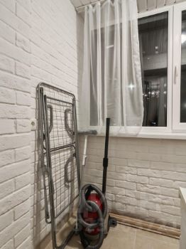 Балкон: стеллаж, сушилка для белья, стремянка, табуреты, освещение.