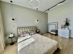 В квартире есть всё необходимое для комфортного проживания. Дизайнерский ремонт подчёркивает стиль и уют. На кухне и в комнатах имеется мебель. Из техники - холодильник, телевизор SMART, стиральная машина, бойлер, кондиционер, посудомойка. Есть лоджия, что добавляет дополнительное место для отдыха или хранения.