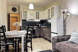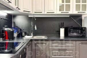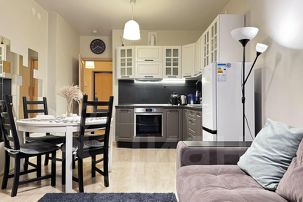 Оборудованная кухня со всем необходимым - варочная панель, духовой шкаф, микроволновая печь, вытяжка, эл. чайник, набор посуды для приготовления пищи (сковорода, сотейник, кастрюля, а также приборы), посуда на 4 персоны и столовые приборы.