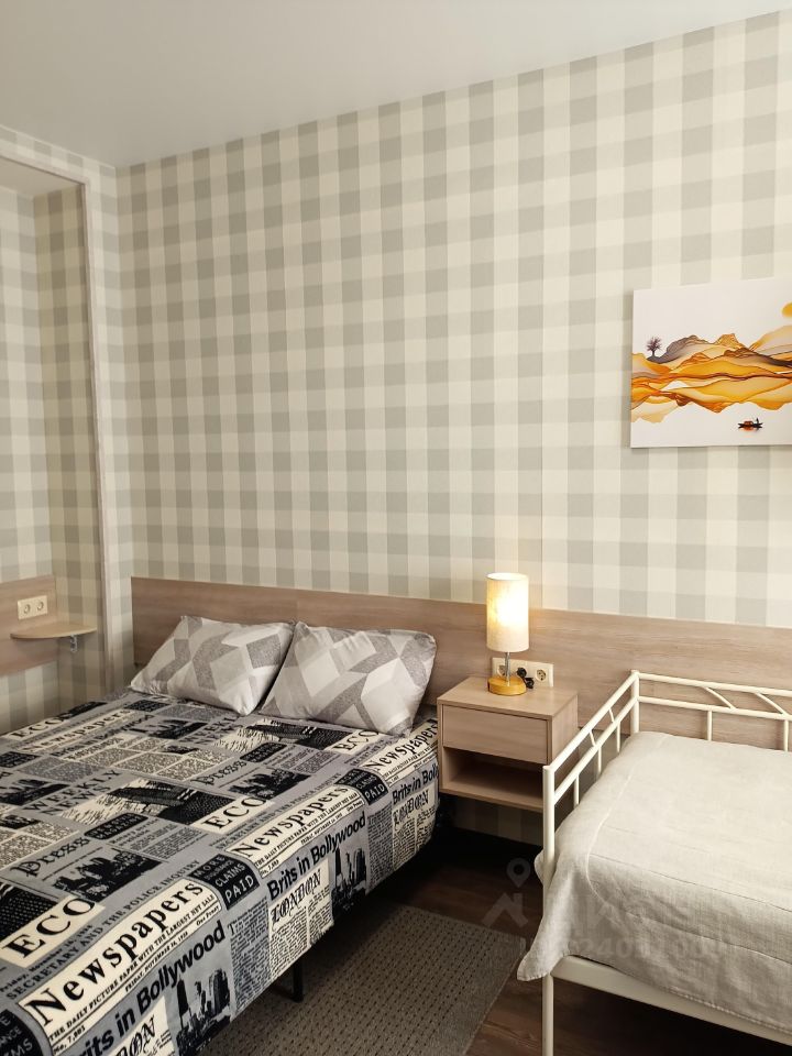 Квартира рассчитано для проживания трех гостей. Спальная зона — с двуспальной кроватью (160х210) и односпальной кроватью (90х200).
