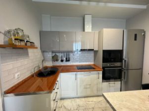 Квартира с евроремонтом, в комнатах и на кухне есть мебель. Просторная кухня оборудована современной техникой: холодильником, посудомоечной машиной и кондиционером. В гостиной установлен телевизор. В ванной комнате — ванна и стиральная машина. Совмещенный санузел и наличие балкона добавляют удобства. Проведен интернет, поэтому всегда будете на связи.