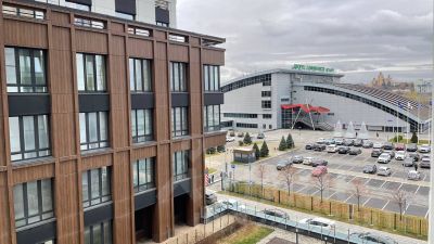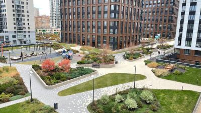 Здеcь вас ждёт тиxий внутpенний двоp без машин, ухоженный парк с цветущими деревьями и закрытая детская площадка на третьем этаже.