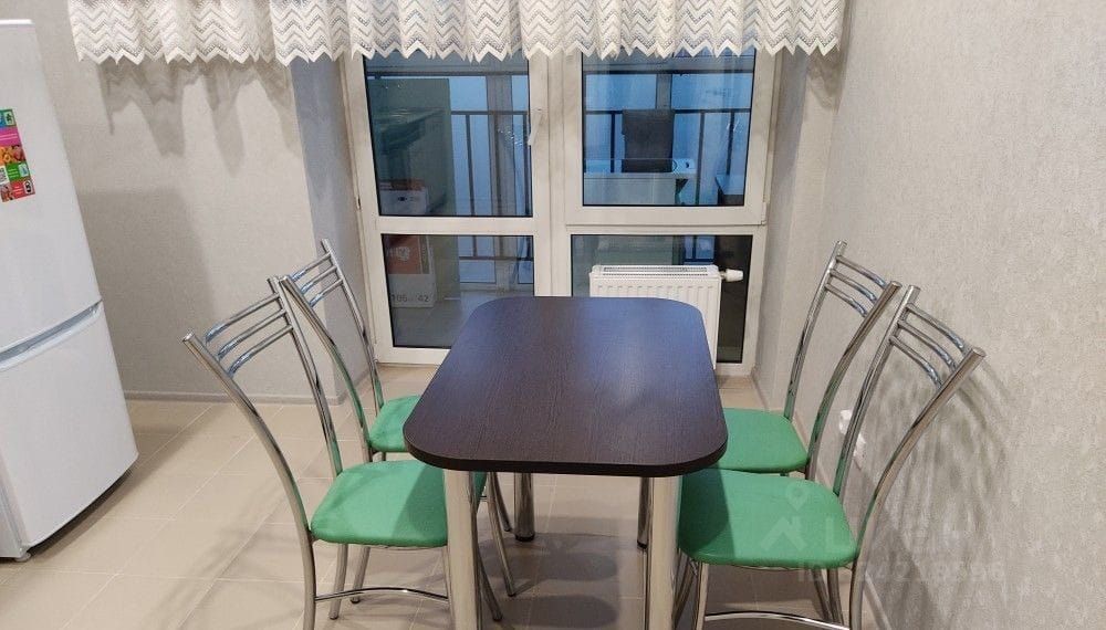 Квартира в отличном состоянии, с современным ремонтом. В комнате есть удобная мебель — большой диван, шкаф для одежды и рабочий стол. Кухня оборудована всей необходимой техникой: холодильник, плита, вытяжка и микроволновая печь. Санузел совмещённый, с новой сантехникой и стиральной машиной.