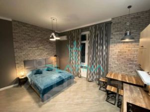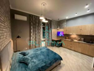 Здесь вас ждет просторная студия с удобной двухспальной кроватью, современной техникой и мебелью класса люкс. Для вашего удобства предусмотрены:
