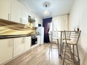 В квартире есть всё необходимое для комфортного проживания: современная мебель в комнате и на кухне, телевизор, холодильник и стиральная машина. Планировка включает совмещённый санузел с ванной и балкон, где можно наслаждаться свежим воздухом. В квартире проведены интернет и телефон, что позволяет всегда оставаться на связи.