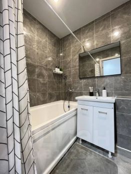 Чистая квартира с современным ремонтом, расположена в спальном районе — вокруг развитая инфраструктура в сочетании с торговыми центрами и удобной транспортной развязкой.