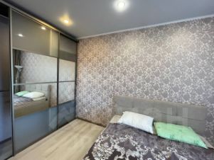 Комната с двухспальной кроватью , телевизором и шкафом купе. Другая комната с раскладывающимся диваном, стеллажом и шкафом. Кухня оборудована всей техникой для приготовления пищи: газовая плита, электрический духовой шкаф, холодильник. Имеется вся необходимая посуда.