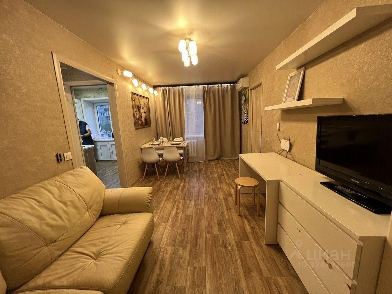 В квартире сделан качественный ремонт, что создаёт приятную атмосферу. Комнаты светлые и просторные. Кухня оснащена всей необходимой техникой, включая плиту, холодильник и микроволновую печь. В гостиной есть удобный диван и телевизор, а в спальне — большая кровать и шкаф для одежды. Санузел совмещённый, недавно обновлён.