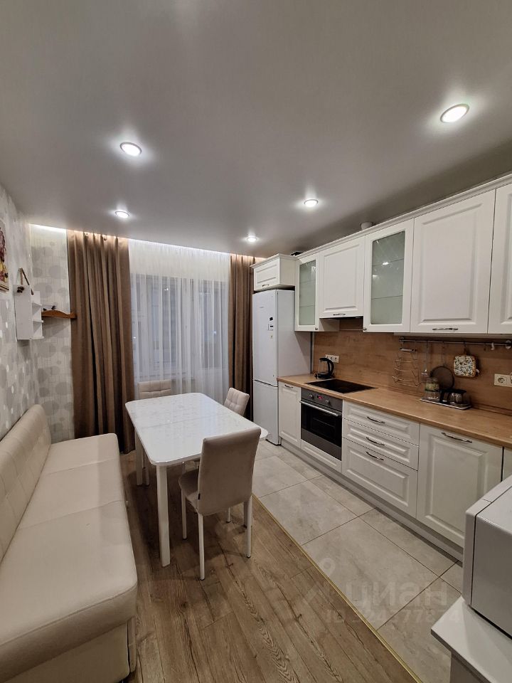 Сдается уютная однокомнатная квартира в Казани по адресу улица Адоратского, 4. Общая площадь квартиры 35 кв. м, жилая площадь — 20 кв. м, кухня — 10 кв. м. Квартира расположена на 4 этаже 14-этажного кирпичного дома, построенного в 2011 году. Высота потолков — 2.7 метра. До метро "Яшьлек" всего 7 минут на автомобиле.