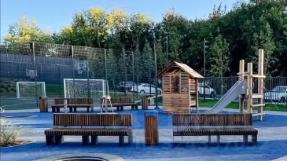 Для любителей спорта - отгороженная спортивная площадка с уличными тренажерами.