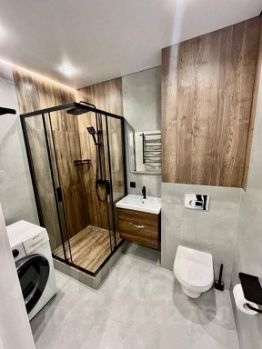В квартире есть всё необходимое для комфортного проживания. Дизайнерский ремонт подчёркивает стиль и уют. На кухне и в комнатах имеется мебель. Из техники - холодильник, телевизор SMART (в спальне), стиральная машина, бойлер, кондиционер, посудомойка.