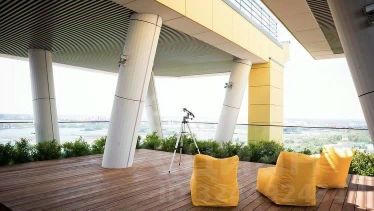 -В ЖК имеется: парк на крыше дома (где по утрам можно делать зарядку, и днем работать с панорамным видом на Казань и все достопримечательности города, а в выходные с утра проходит йога и вечером просмотр фильмов на проекторе с соседями), подземная парковка, в лобби: консьерж, колясочная и гостевая зона с диванами, столами, тв, детским столиком. На территории ЖК так же расположены: зона отдыха, детская игровая площадка, тренировочная зона и велопарковка.