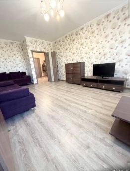 Сдаётся просторная однокомнатная квартира с евроремонтом в современном 18-этажном доме на 7 этаже. Общая площадь квартиры — 60 кв. м, из которых кухня занимает 19 кв. м. Окна выходят во двор, что обеспечивает тишину и уют. Рядом с домом есть наземная парковка.
