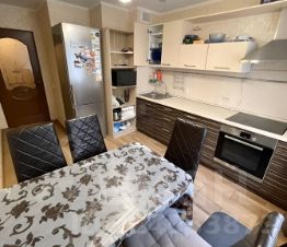Квартира с евроремонтом, обставлена современной мебелью на кухне и в комнате. В наличии вся необходимая техника: холодильник, телевизор, стиральная машина. Удобная планировка включает отдельный санузел, ванну и душевую кабину, что делает проживание комфортным. Есть лоджия и балкон, окна выходят как на улицу, так и во двор.