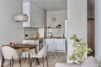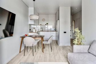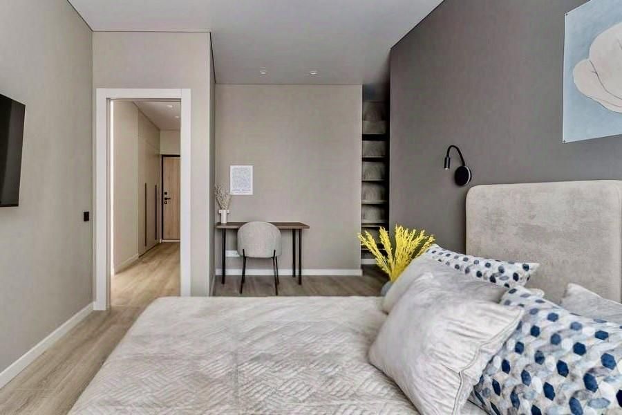 В квартире есть всё необходимое для комфортного проживания. Дизайнерский ремонт подчёркивает стиль и уют. На кухне и в комнатах имеется мебель. Из техники - холодильник, телевизор SMART, стиральная машина, бойлер, кондиционер, посудомойка.