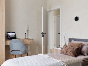 В апартаментах 2 изолированные спальни и кухня - гостиная. В гостиной расположен уютный раскладной диван. В первой спальне - большая мягкая кровать, вторая спальня - 2 полутораспальные кровати, которые можно совместить.