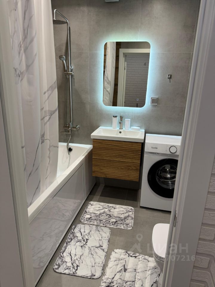 Квартира с евроремонтом, обставленная современной мебелью и техникой. Комнаты светлые и просторные, на кухне установлен холодильник и посудомоечная машина, в комнате есть телевизор. В ванной комнате — ванна и стиральная машина. Санузел совмещённый. Интерьер выполнен в светлых тонах, что создаёт атмосферу уюта и комфорта.