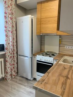 В квартире есть всё необходимое для комфортного проживания. На кухне и в комнате установлена мебель. Из техники — холодильник, телевизор и стиральная машина. Ванная комната оборудована полноценной ванной. В квартире подключён интернет, что позволяет оставаться на связи.