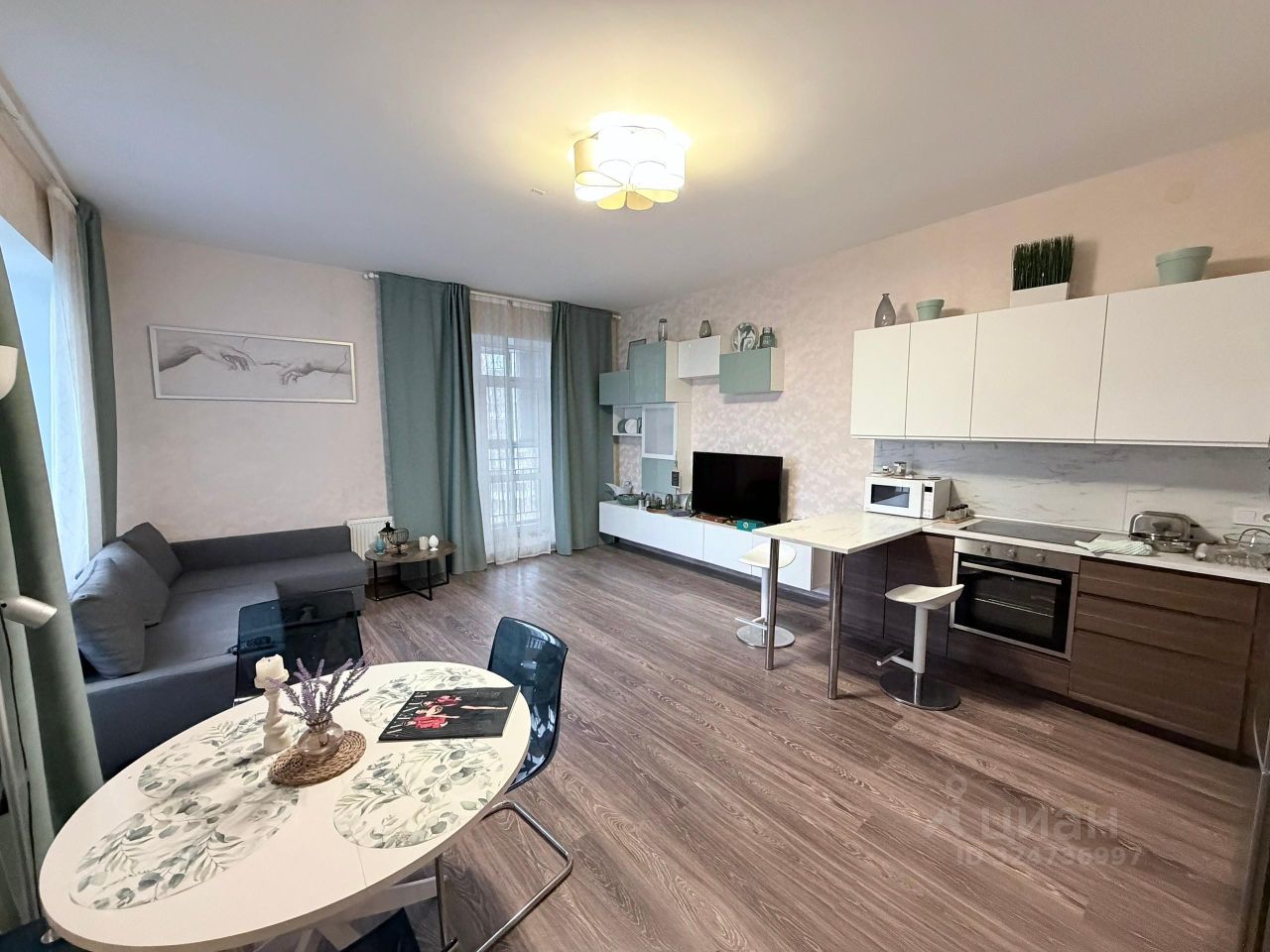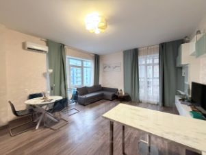 Квартира в отличном состоянии: сделан современный ремонт, установлена качественная мебель и техника, поэтому можно сразу заезжать и жить. Планировка включает просторную гостиную, уютную спальню и кухню, оснащённую всем необходимым для комфортного проживания. Санузел раздельный, выполнен в современном стиле.