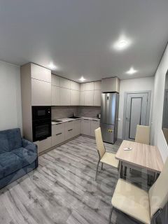 Квартира полностью готова к заселению. Внутри выполнен современный ремонт, имеется вся необходимая мебель и техника: удобный диван, шкаф для одежды, кухонный гарнитур, плита, холодильник и стиральная машина. Просторная планировка позволяет комфортно разместиться одному или паре. Санузел совмещённый, что добавляет удобства.