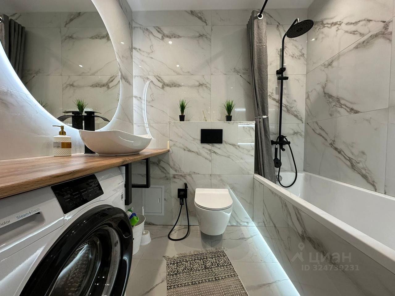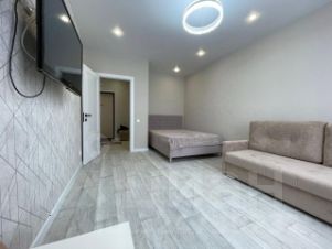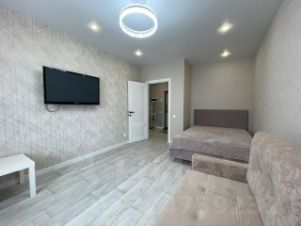 В квартире выполнен свежий ремонт в светлых тонах, создающий атмосферу уюта и простора. Она полностью меблирована и готова к проживанию: есть удобный диван, обеденный стол, вместительный шкаф и все необходимые элементы обстановки. Кухня оснащена современной техникой, включая холодильник, плиту и микроволновую печь. Санузел совмещённый, с новой сантехникой и стиральной машиной.