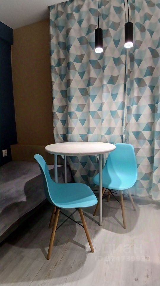 В квартире сделан евроремонт, всё обставлено для комфортного проживания. Пространство студии организовано максимально функционально: есть все необходимое для жизни — кухонная мебель, холодильник, стиральная машина и телевизор. Совмещённый санузел оборудован ванной. Коммунальные услуги включены в стоимость, отдельно оплачивать не нужно!