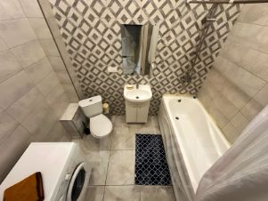 В квартире сделан качественный ремонт, установлена современная мебель и техника. Просторная комната с удобной планировкой, где можно легко организовать рабочее место или зону отдыха. Кухня оборудована всем необходимым для комфортного проживания. Санузел совмещённый, в современном стиле.