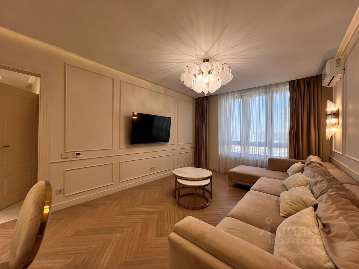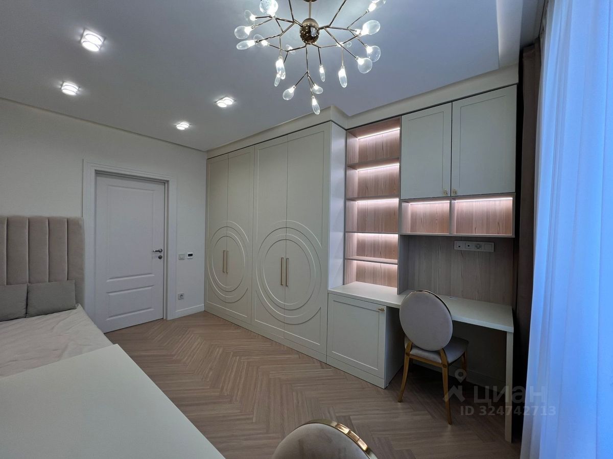 Квартира оформлена в современном стиле, с качественным ремонтом. Здесь есть все необходимое для комфортного проживания: встроенная мебель, удобная мягкая зона, обеденный стол и стулья. Кухня оснащена современной бытовой техникой, включая холодильник, плиту и микроволновую печь. В квартире два санузла, один из которых оборудован ванной, а второй — душевой кабиной, что делает проживание максимально комфортным для всей семьи.