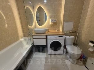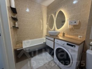 Уютная, с теплой подсветкой зеркал. Стиральная машина, вместительная столешница, чистая ванна с защитным стеклом. Комфортно, практично.