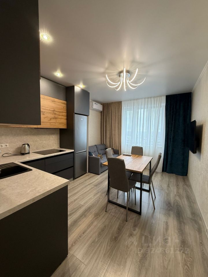 Квартира оформлена в современном стиле, выполнен качественный ремонт. В комнатах есть вся необходимая мебель: удобные кровати, вместительные шкафы и уютные диваны. Кухня оборудована современной техникой, включая холодильник, плиту и посудомоечную машину. Санузел раздельный, выполнен в светлых тонах.