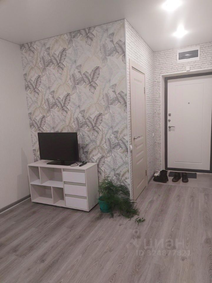 Сдается уютная студия в современном жилом комплексе в Казани, расположенная по адресу: улица Умырзая, 12. Квартира общей площадью 32 кв. м находится на 14 этаже 20-этажного кирпичного дома, построенного в 2021 году. Высокие потолки (2.64 м) создают ощущение простора.