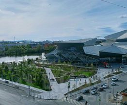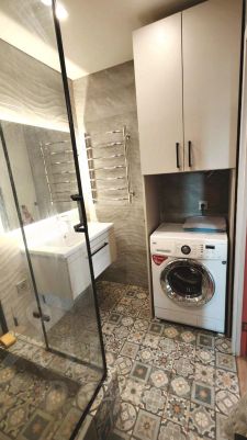 2-комнатная квартира оформленная в серо-бежевом,терракотовом и оливковых тонах в центре Казани.Дизайнерская видовая квартира.Панорама открывается на озеро Кабан и новую визитную карточку республики - современный театр Галиаскала Камала,новый парк и набережную озера Кабан.